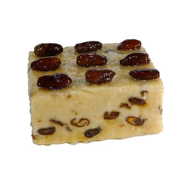 Se trata de un turrón a base de almendras al que se le ha agregado dátiles y queso, dándoles estos ingredientes un exotismo peculiar.